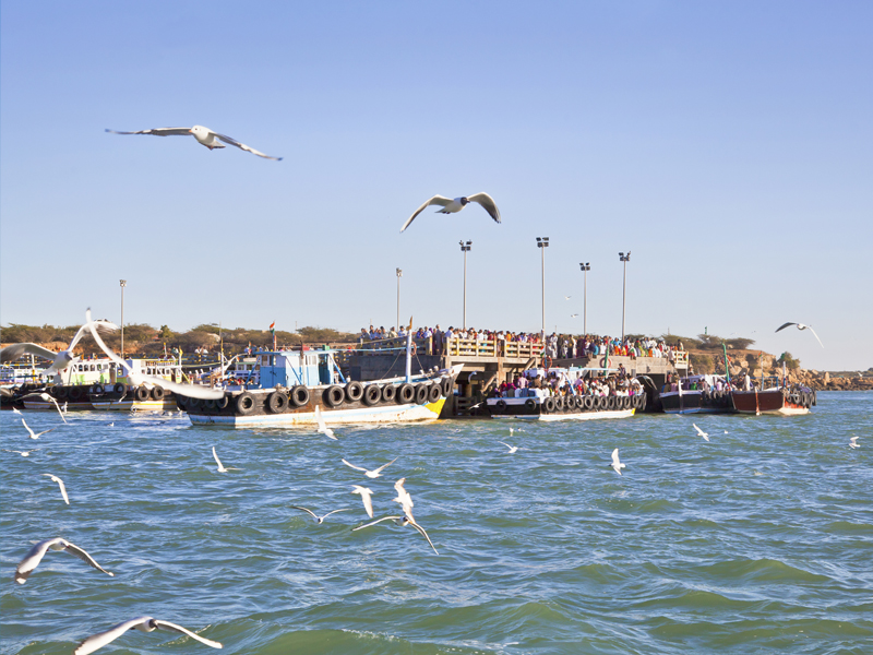 Bet Dwarka or Shankhodhar is an inhabited island at mouth of Gulf of Kutch situated 3 km (2 mi) off the coast of Okha, Gujarat, India. The island is measured northwest to southeast in 13 km (8 mi) with an average 4 km (2 mi) in east-west direction. It is a strip of sand and stone situated 30 km (19 mi) north of town of Dwarka.