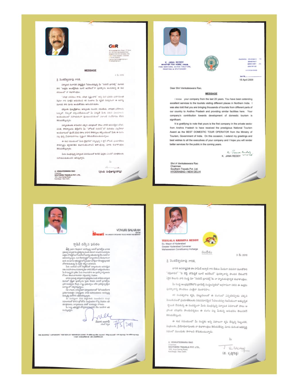 Messages received on the occasion of National Tourism Award by our company